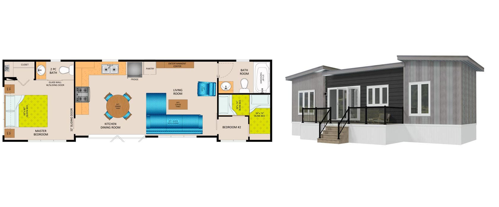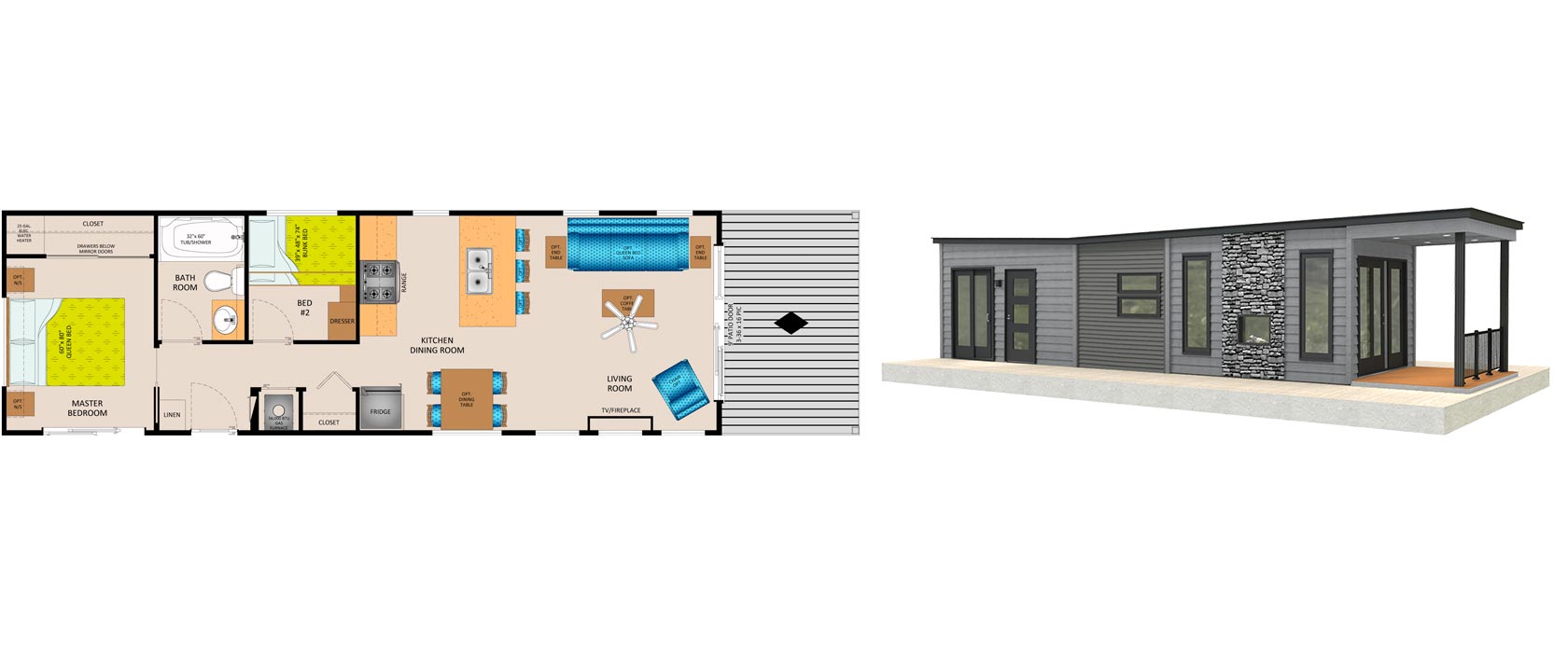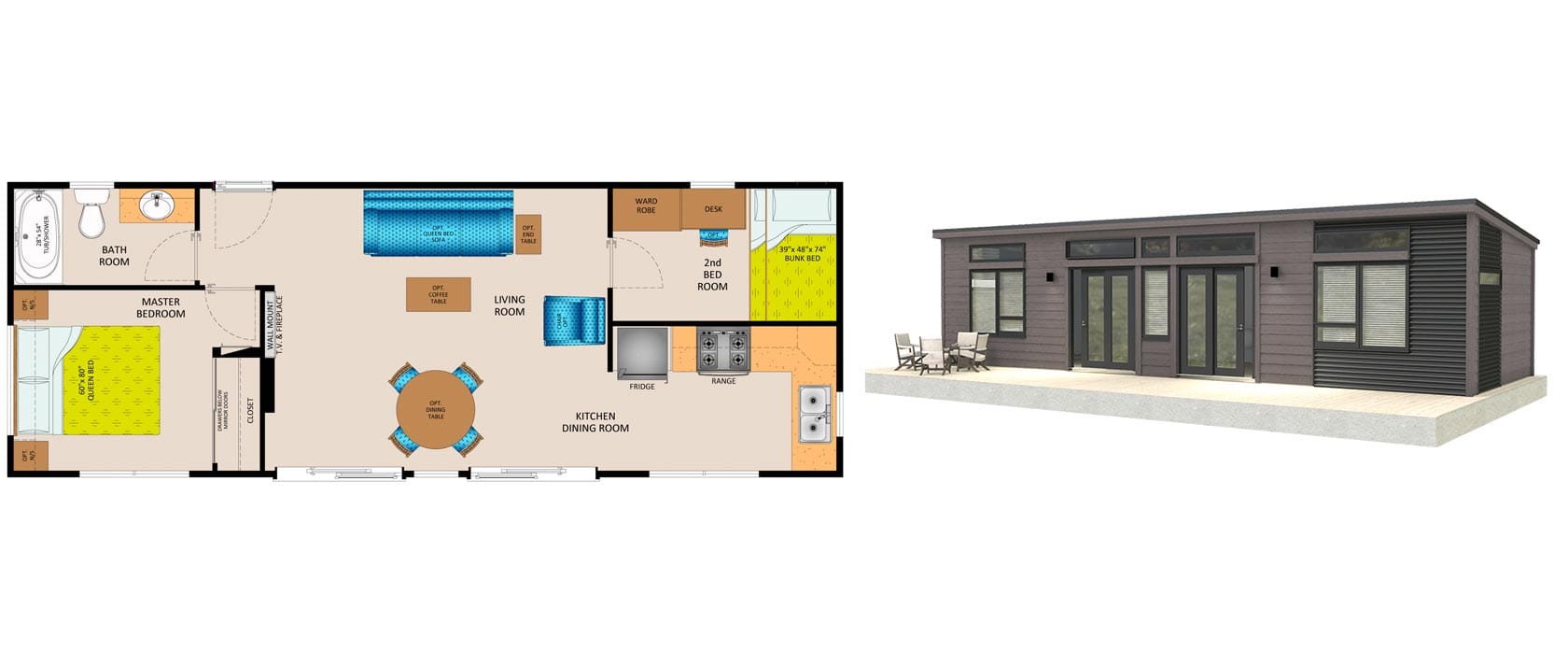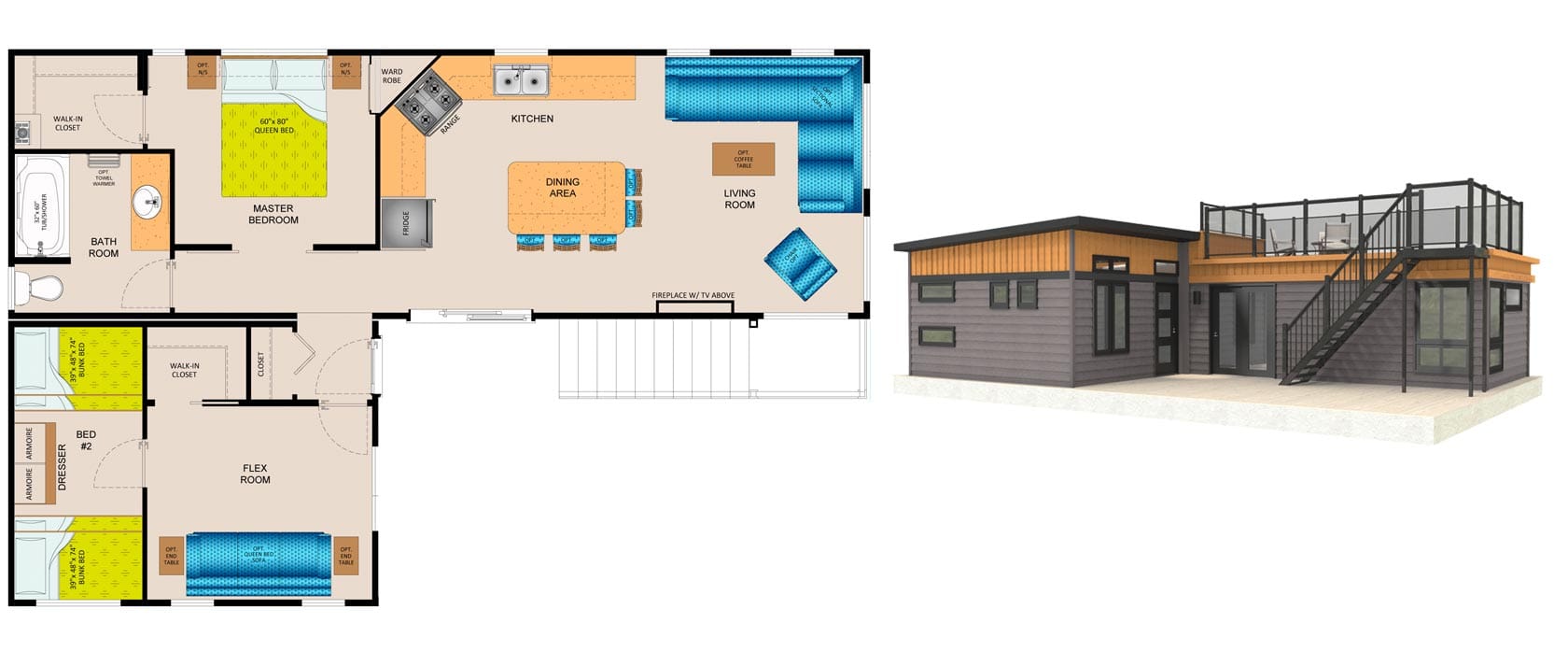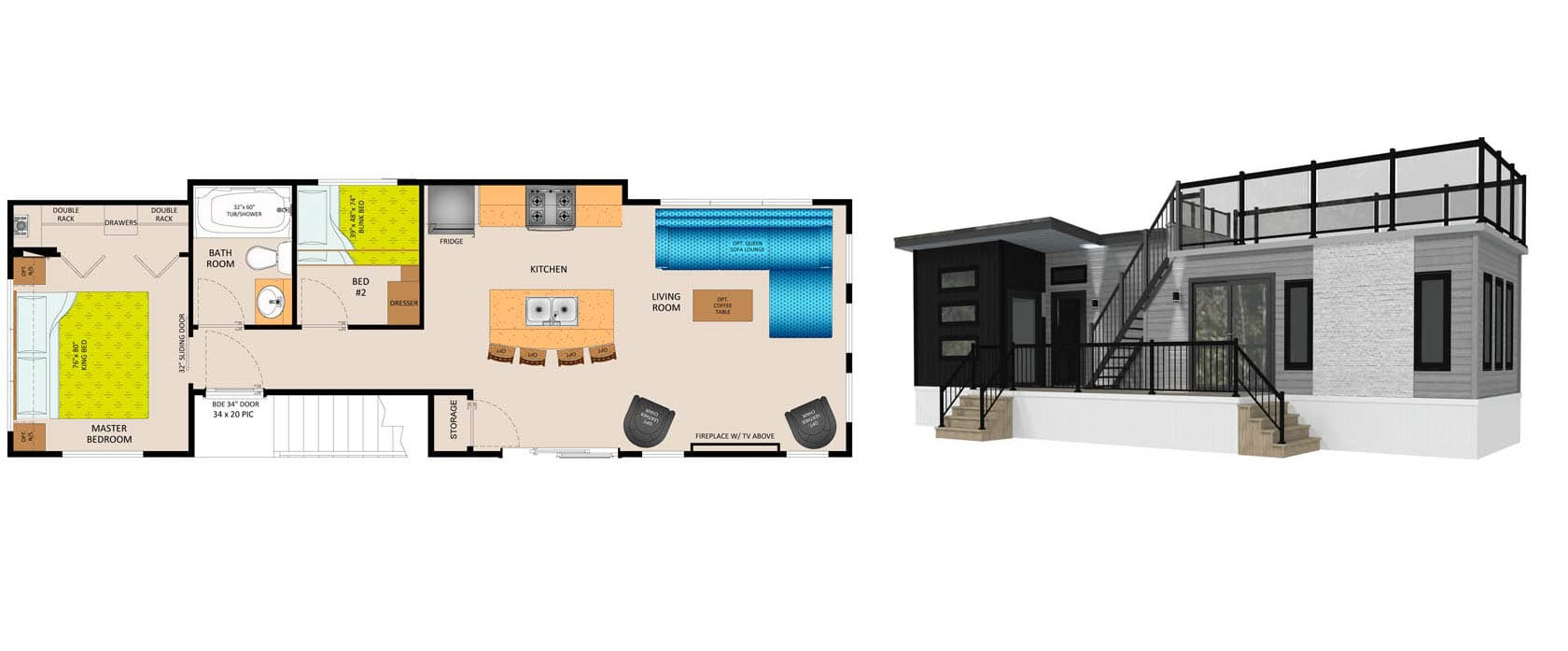 The Klondike Gold collection is exclusive to The King's Landing Resort Group Ltd. These are not your fathers small trailer. Each speaks to nature through design, comfort and unprecedented luxury. Maximizing living space in and around the park model as well exquisite views from the rooftop terraces with their clear railing systems, and optional outdoor kitchen, BBQ and Bar. Enjoy views like no others.